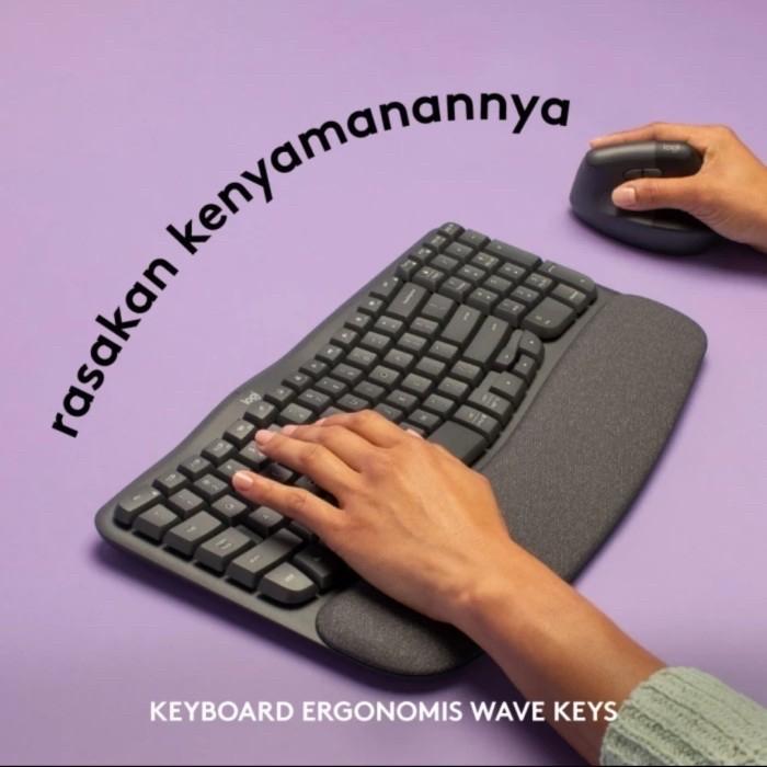 Rasakan kenyamanan menggunakan Wave Keys, keyboard wireless ergonomis yang dibentuk untuk membantumu menjalani hari-hari kerja dengan lebih mudah. Mengetik dengan tanpa gangguan sepanjang hari. Desain bergelombang keyboard yang ringkas menempatkan tangan, pergelangan tangan, dan lengan bawah mu pada posisi mengetik yang paling pas.